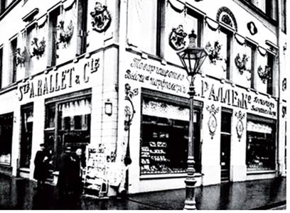 Established by Alphonse Rallet (1819 – 1894) - perfumer, cosmetics and toiletry business of 4 rue Berryer, Paris. Travelled to Moscow in 1842 and in 1843 established a soap and perfume works at 47 Vyatskaya Street, with exclusive French management and a workforce of about 40 personnel , became very successful.